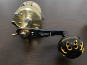 もう一台は、カルカッタ。バスフィッシングのトップウォーター用にバリバリ使用していました。こちらもアマゾンでゴメクサスのパワーハンドルを購入。パワーハンドルを装着するとソルト感が出てきます。