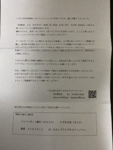 オーダーの仕方としては、ホームページにある問い欄に必要事項を記入し送信ボタンを押します。2営業日以内に返事をする事がHPには書かれていますが、私の場合は半日以内にメールがきました。その後、リールを宅配便でSelffishさんに送ります。メンテ着手までに1ヶ月弱はかかりますが、どこの部品を替えます等のメールがきます。そこで指示をすれば翌日位には作業完了のメールが来て。発送の日にち等もメールで知らせしてくれます。こちらから発送したダンボールで宅配便にてリールが戻って来ます。戻ってきたリールと一緒に変更したパーツや請求書等が入っています。請求書に記載されている振り込み先に請求金額を振り込みます。入金の確認メールが来ます。