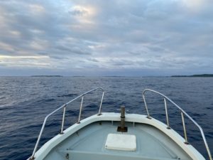 前回の強風とは打って変わって、風はほとんどなし。今回は湾内ではなく外海のポイントに向かう。多少のウネリはあるものの風はほとんどなく穏やかな海なのだろうか?