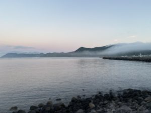 で2泊目の朝は洞爺湖から車で20分ほどのところにある、豊浦漁港に向かった。夜明けの風景はとても幻想的で、北海道の自然の良さを改めて感じた。だがしかし、この漁港では子サバが数匹釣れたが、それ以外は、どうも釣れそうになかったので、ちょっと気になっている漁港に移動することにした。
