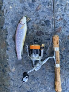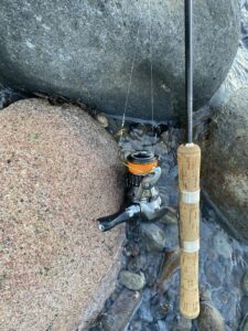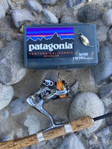 ロッドは昨日と同様のシルバークリーク、5フィート、ウルトラライトアクション、リールはツインパワーC2000HGS、PE0.6号+リーダーフロロ4ポンド、ルアーはスピナーを選択した。