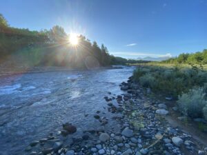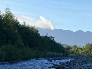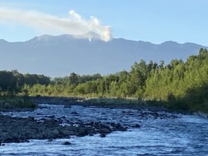 やっぱり綺麗な川で、綺麗な景色を眺めながら釣りができることはとても幸せを感じることなのである。この日は遠くの十勝岳(多分)がくっきり見えていた。私が来た日から昨日までは雲がかかって山頂までは見える日がなかった。