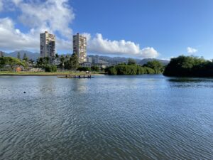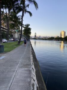 で今回のハワイでの釣りは、以前バラクーダを釣ったことがあり、今回3泊する宿泊先の裏手にあるアラワイ運河とカカアコウォーターフロントパーク。ネットで調べてポイントとして掲載されているマカイリサーチピアは、早朝暗いうちに行ってみたが門が閉まっており9時だか10時にならないと開門しないことが看板に書かれていたため、早朝の朝食までしか時間の無い私は諦めるしかなかった。